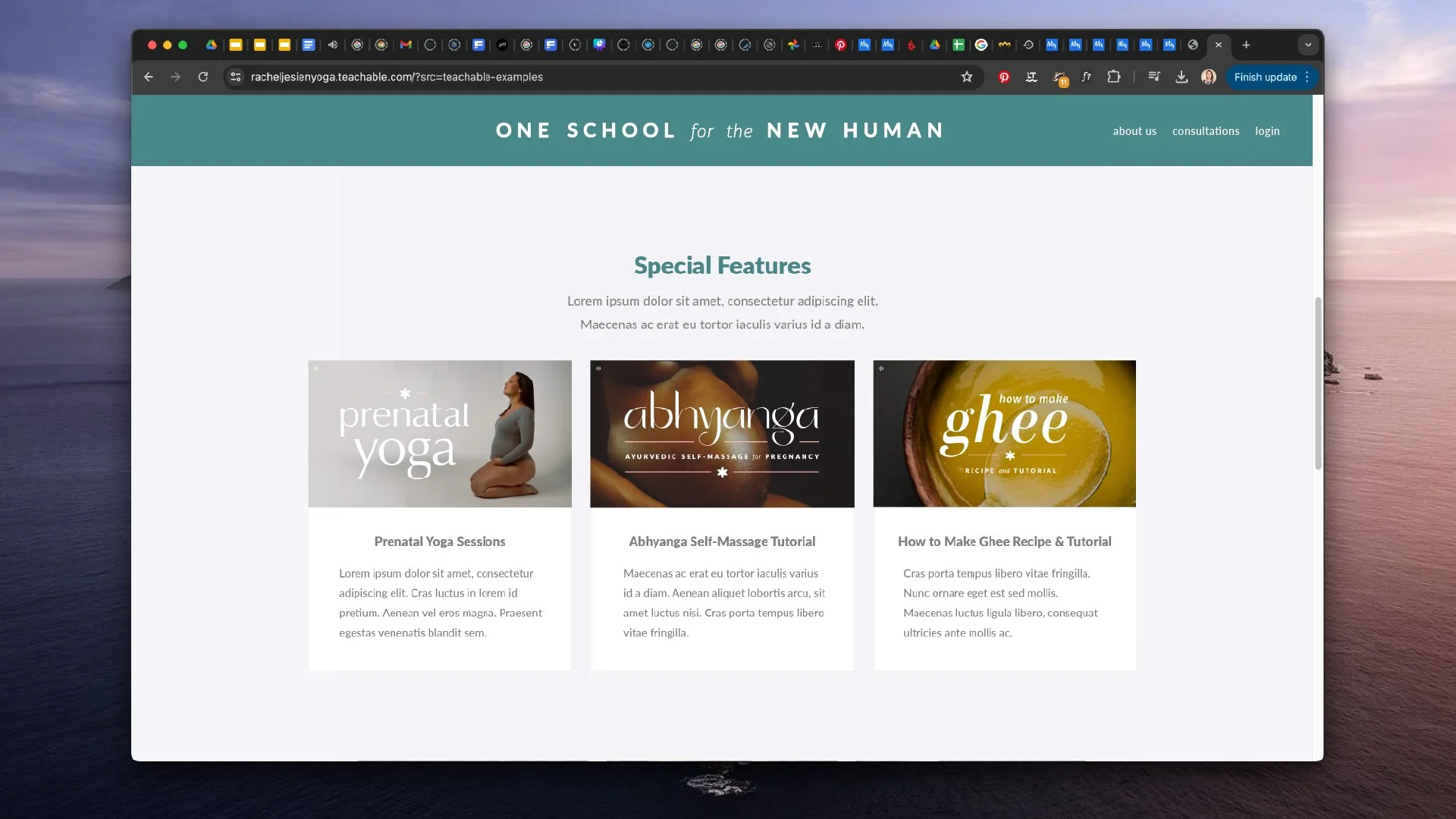 ONE SCHOOL is a conceptual education platform built around a holistic, content-driven approach to online learning. The project establishes a sophisticated and emotionally resonant visual identity designed to differentiate within the growing wellness education space, while remaining scalable across a diverse range of course offerings.